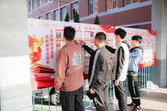 为了响应党中央、省委、山钢党委积极开展党史学习教育的号召,在公司党委的领导下,冶金与汽车工程系党总支精心筹备,前期组织了一百名师生分别讲述了建党一百年来的一百件大事。党总支将这一百件大事以文字和图片的形式制作成宣传栏,并将师生们讲述党史的音频制作成二维码,呈现在宣传栏上。师生在观看宣传栏的同时,可以通过扫描二维码就可以实现一边参观学习党史资料,一边收听党史讲解内容。3月24日下午,公司党总支组织了参与讲述党史故事的一百名师生将自己的名字郑重的签在了宣传栏的讲述人一栏。