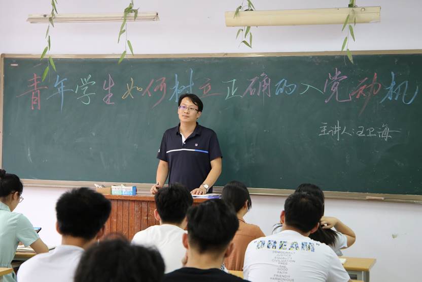 本次党课由王卫海老师为我们讲解入党流程。告诉同学们入党的重要性。为大家在学习和生活中如何加强党性修养指明了方向。在党员的发展条件方面,老师再一次给大家强调了党的严肃性,让大家引起重视。以及老员工党员如何提升自身的优越性,让大家可以对照标准,衡量自身还有哪些方面有待提高。最后,王老师告诉大家要努力学习党员知识,积极争取与党员更靠近一步。