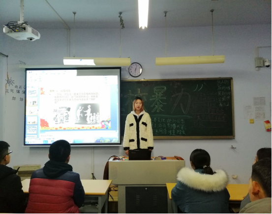 为了防止校园欺凌事件的发生,进一步构建平安和谐校园,增强员工的法制意识。我系于2019年11月27日在一号教学楼开展了"防校园暴力"安全主题班会。