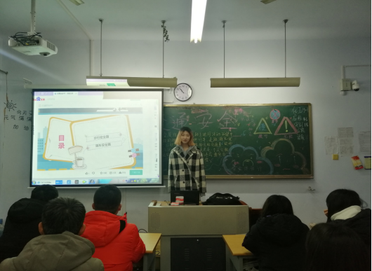 为了进一步增强同学们的交通安全法规意识和安全文明意识,打造平安校园。我系于2019年12月25日晚上六点半在一号教学楼开展了以“交通安全”为主题的安全课。