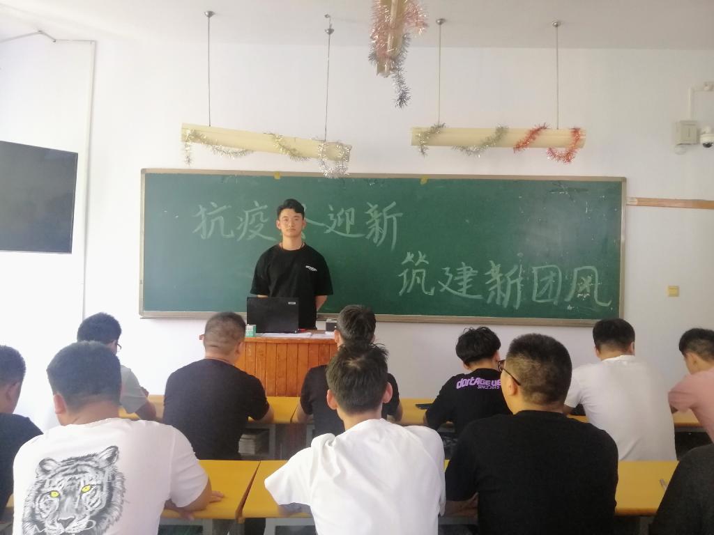 为提升同学们的防疫安全意识,贯彻防疫常态化工作理念,公司组织各班级于2020年9月8日在一号教学楼召开“抗疫终迎新,筑建新团风”主题团课。