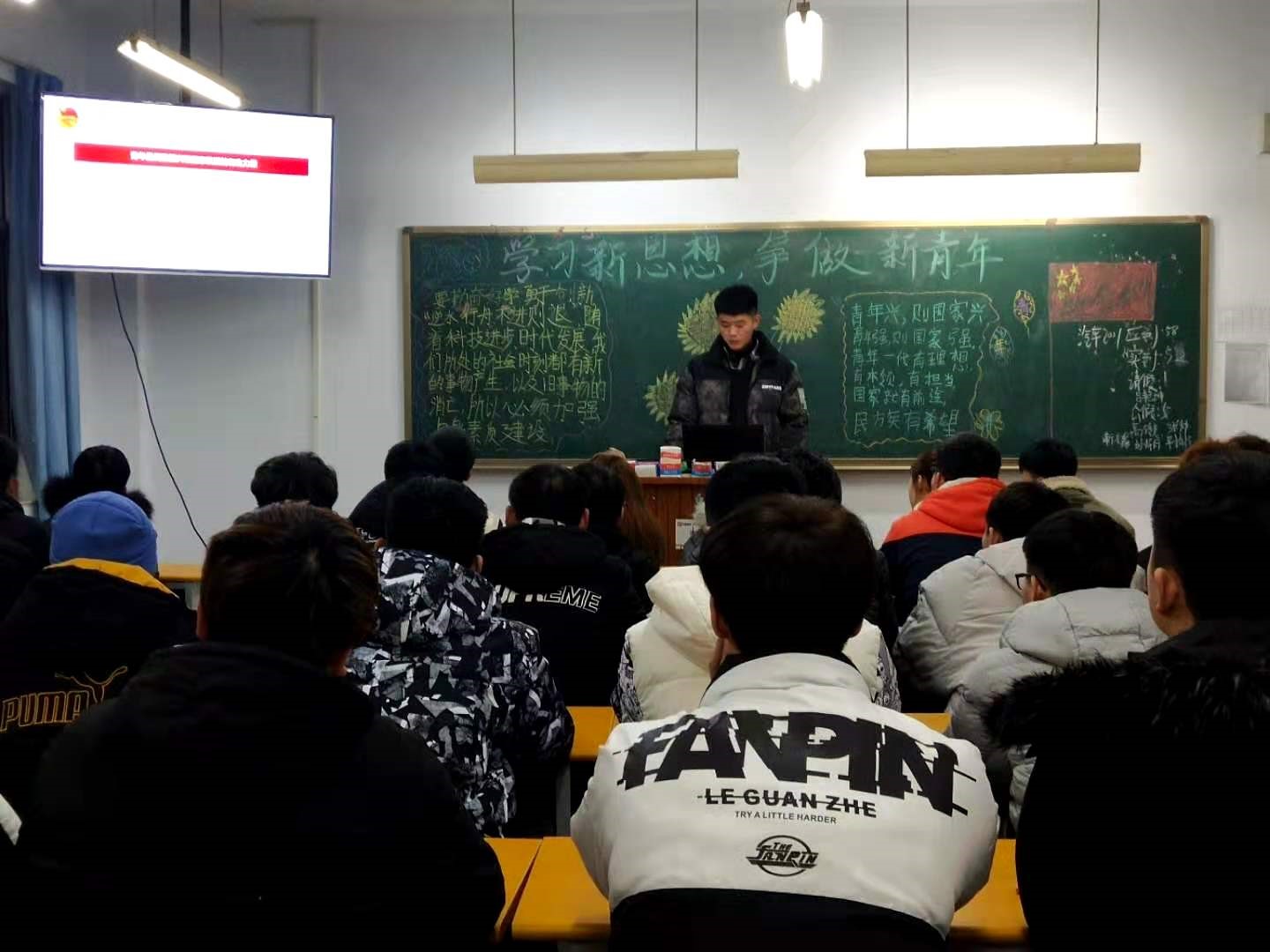 为使公司员工充分了解关于共青团的先进思想,加强个人思想觉悟,增强同学们的思想认同和政治认同,深入理解和贯彻党团的创新理念。对此,公司于2020年12月8日在一号教学楼开展了“学习新思想,争做新青年”的主题团课。