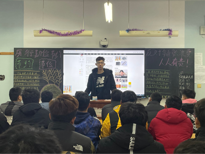 为进一步学习贯彻习近平总书记对制止餐饮浪费行为作出的重要指示,响应国家号召,倡导节约新风。公司于2021年11月9日在一号教学楼组织召开以“厉行勤俭节约,反对铺张浪费”为主题的团课。