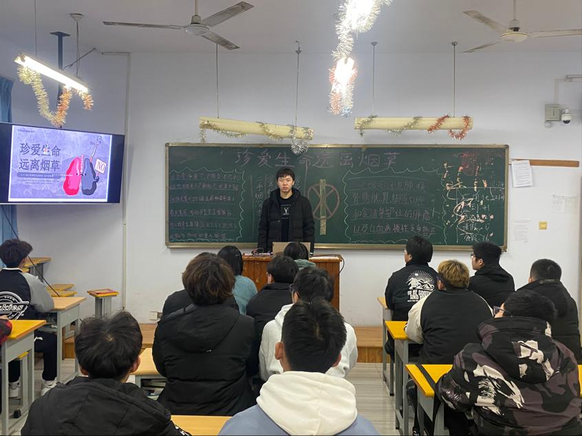 为了创建文明整洁的校园环境,让同学们充分了解烟草对人体的危害以及吸烟所导致的严重后果,公司于2021年11月24日在一号教学楼开展“远离烟草,健康生活”主题班会。