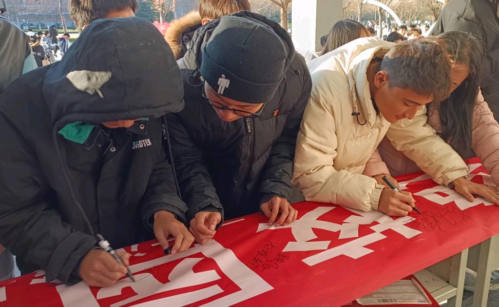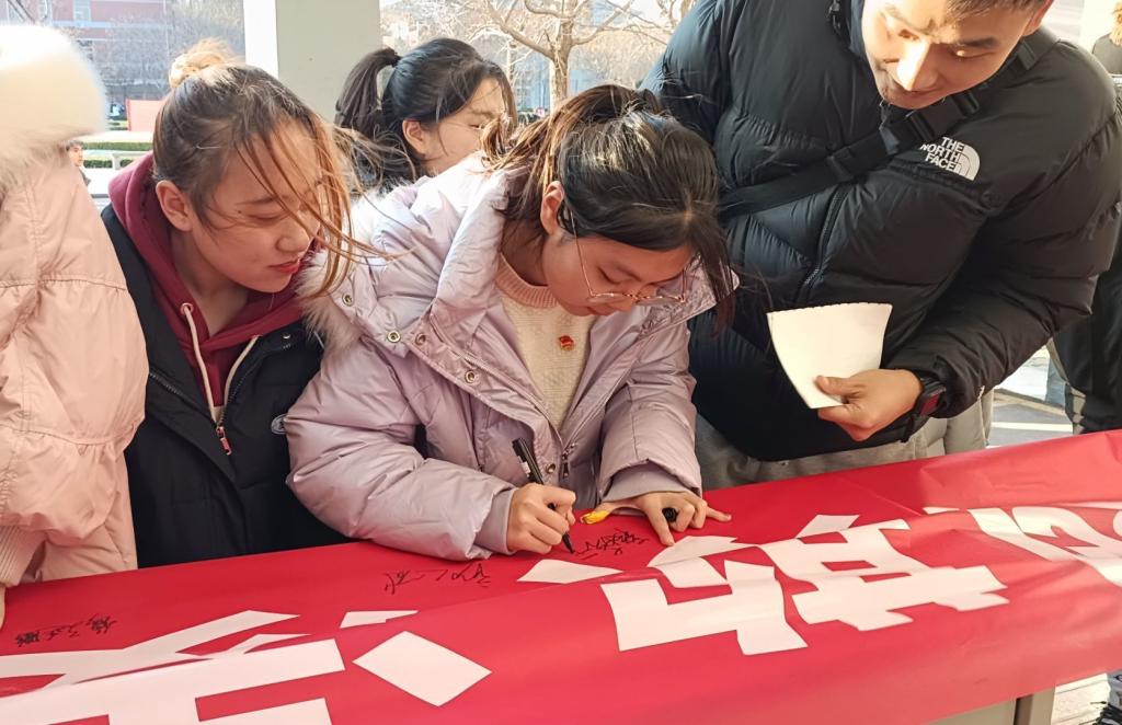 在此次签字活动中,同学们积极参与,横幅上的签名不仅是对校园暴力坚决反对的坚定信念,更是对自身日常行为的严格约束,同时为公司良好校风、学风的形成奠定了坚实的基础。
