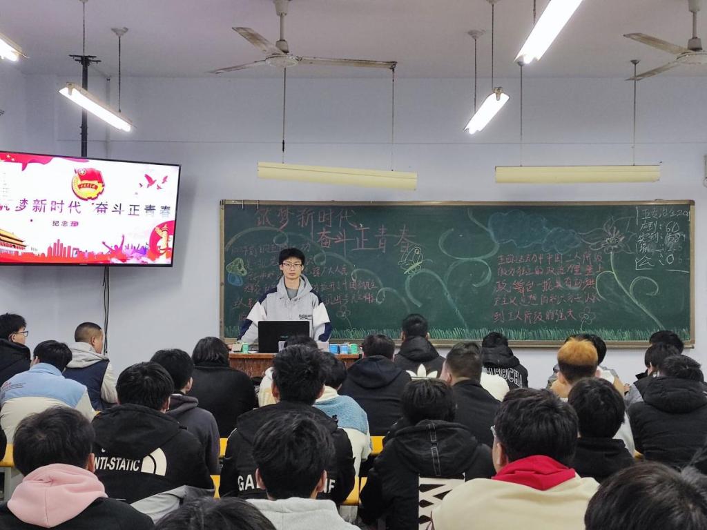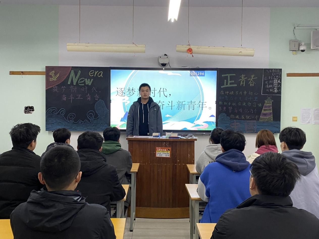 此次活动由各班团支书组织开展。首先,各班团支书以PPT的形式,向大家展示了新时代青年的奋斗路程及取得成就。此次团课介绍了新时代青年王殳凹等同志,被授予“中国青年五四奖章”的事迹,激励大家努力奋斗。然后,各班团支书带领大家学习团组织下发的相关文件。同学们学习态度认真、纷纷表示要砥砺前行、牢记使命,勇担时代重任,为新时代更加繁荣昌盛而不懈奋斗。最后,各班同学在团支书的带领下,积极发言,表述自己对未来的理想。尽自己最大努力、不断进取,表达对国家与社会主义的崇高敬意。