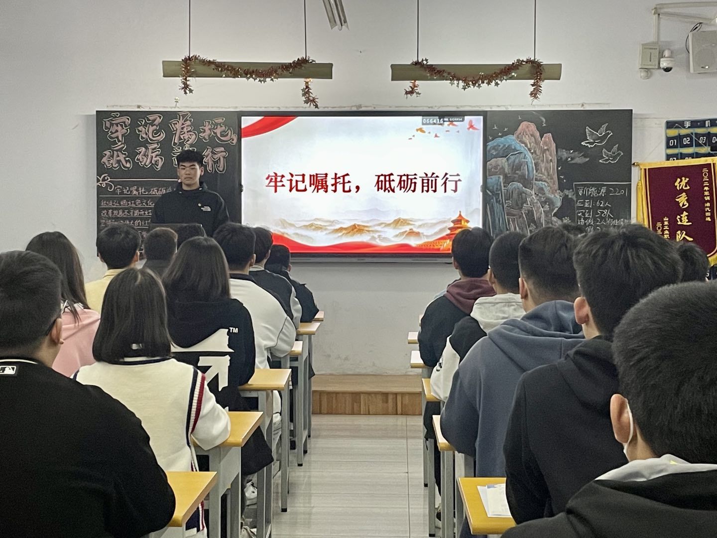 为了使同学们能够积极努力,奋发前进,不忘初心,牢记使命,成为堪当时代大任的时代新人。公司于2022年10月11日在一号教楼组织召开以“牢记嘱托,砥砺前行”为主题的团课。