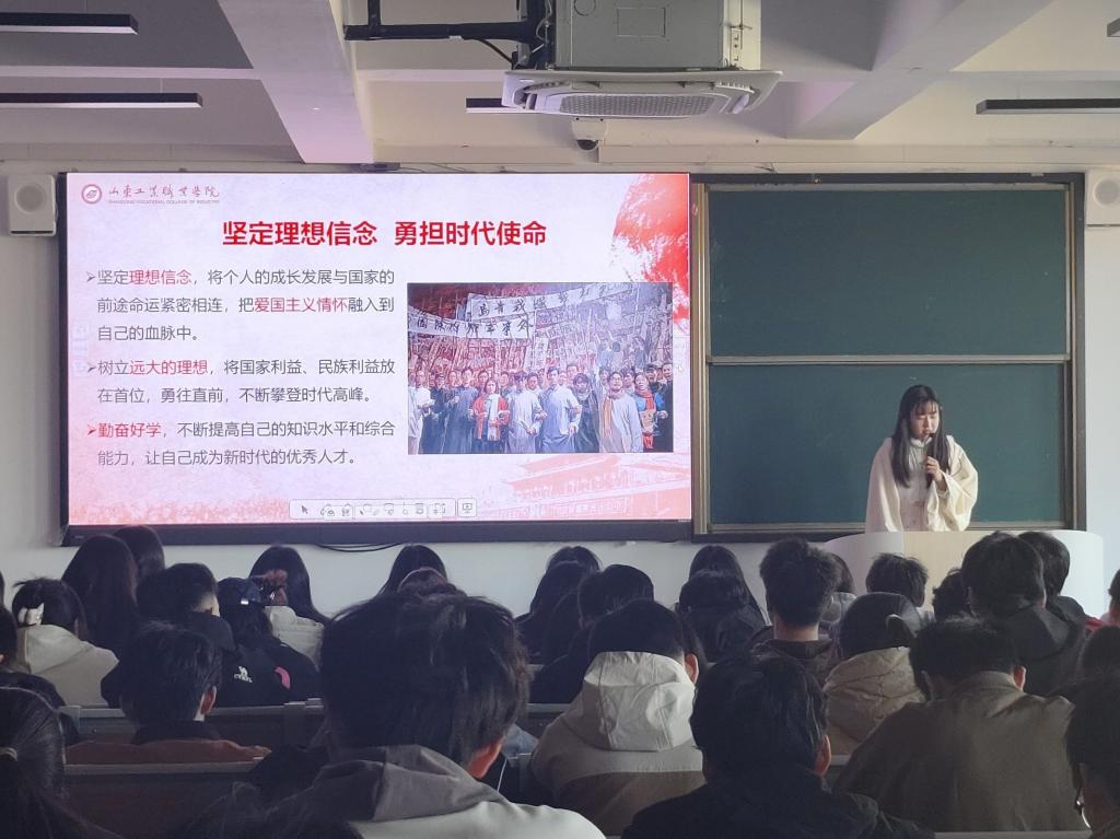 本次团课由何书言主持。以史为鉴,展望未来。团课上何书言主要从历史中的青年、当代青年、勇担时代使命三个方面向入团积极分子娓娓道来。百年之前,中国青年即使生逢乱世,即使命运如蝼蚁,但仍有人心向阳光。在《觉醒年代》的视频片段中,陈延年、陈乔年等革命烈士生动的诠释了“革命者光明磊落,视死如归,只有站着死,绝不跪下”的英勇与热血。一代人有一代人的使命,一代人有一代人的担当。正如“三下乡”社会实践队、青年力量—刘勤道、体育健儿—陈岩松等当代青年那样,在新时代的长征路上,他们接过前辈们的接力棒,正擘画着属于自己的理想蓝图。风好正是扬帆时,奋楫逐浪向未来。何书言在团课最后对入团积极分子表达了期许:“国家的前途,民族的命运,人民的幸福,是当代中国青年必须和必将承担的重任。当代青年应勇担时代使命,树立为祖国为人民永久奋斗、赤诚奉献的坚定理想,在劈波斩浪中开拓前进在披荆斩棘中勇毅前行。”