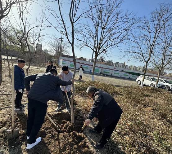 春回大地万物苏,义务植树春盎然。植树现场,党员同志及员工入党积极分子代表们都热情高涨、干劲十足,亲身参与植树造林的劳动实践中,挥锄挖坑、培土压实、提水浇灌,经移栽的绿植新苗迎风挺立,整齐有序,焕发勃勃生机。