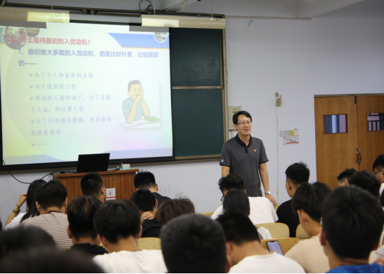 为了提高同学们入党积极性,使大家更加严格要求自己,努力向党组织看齐。我系于2019年6月2日晚在一号教学楼204合堂开展了“正确入党动机的培养和实践”主题党课。