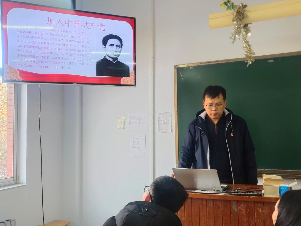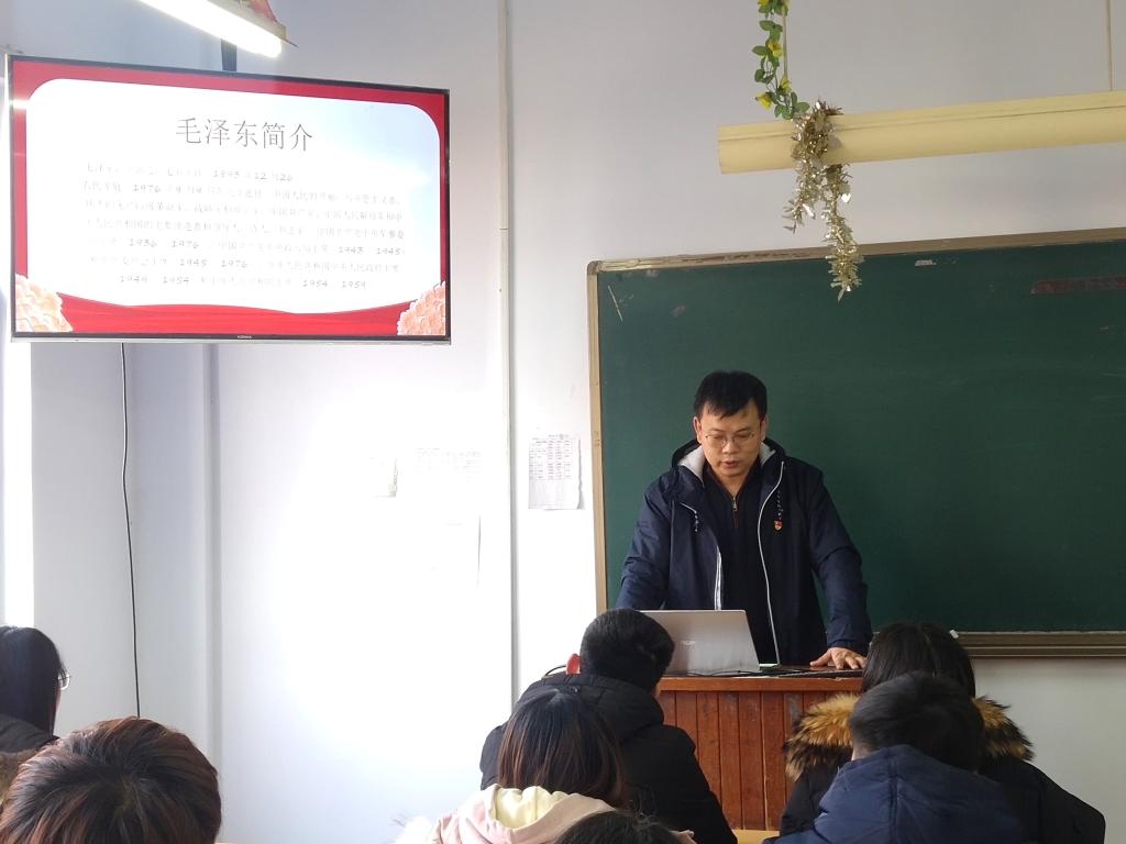本次党课由党总支副书记刘畅老师组织召开。刘畅老师采用PPT的形式为同学们展示了毛泽东的简介,从少年时期、中年时期、老年时期三方面介绍了毛主席一生的种种事迹,并强调了毛主席的丰功伟绩和伟大贡献。同学们表示,会大力学习发扬毛主席敢于斗争、敢于胜利的革命精神,大力学习发扬毛泽东独立自主、艰苦奋斗的精神。