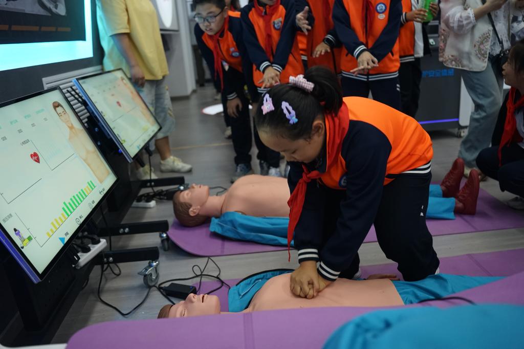 安全体感中心环节中,互动式体验让师生及家长深度投入:专业指导人员先为师生家长讲解工业安全基础常识,随后按组别开展体验项目。在VR安全模拟体验区,大家亲手佩戴VR设备,沉浸式“进入”虚拟工厂车间,模拟操作设备、规避风险隐患,当操作触及“危险行为”时,设备即时发出警示并同步讲解违规后果,不少家长与孩子一同低头观察操作界面,轻声交流规避方法;安全帽撞击体验区,师生家长依次佩戴标准安全帽,在指导下感受不同力度的模拟撞击,通过“佩戴”与“未佩戴”的对比演示,直观体会安全帽对头部的防护作用,有家长主动尝试不同撞击角度,向孩子讲解“正确佩戴安全帽的重要性”;触电模拟体验项目则通过低压安全模拟,让大家在手部接触模拟电极时,感受轻微电流带来的麻酥感,指导人员同步科普“工业用电安全距离”“触电急救基础”等知识,现场互动提问不断,参与人员纷纷动手尝试、认真倾听讲解。