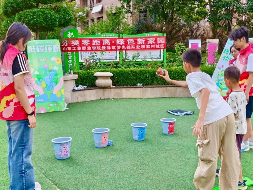 活动伊始,一面精心布置的签名墙吸引了大家的注意。在志愿者的引导下,小朋友们郑重地签下自己的名字,稚嫩的笔迹不仅代表着对活动的参与,更是一份对践行绿色生活的真诚承诺。随后的趣味问答环节将现场气氛推向活跃,志愿者精心设计了多个与垃圾分类、环境保护相关的问题,小朋友们踊跃举手、积极作答。在一问一答中,环保理念悄然扎根,孩子们在互动中增强了环保意识,加深了对垃圾分类知识的理解。游戏环节更是精彩纷呈,“环保套圈”和“沙包分类投掷”等互动游戏,将环保知识与童趣体验巧妙结合。小朋友们全神贯注,将代表不同垃圾的沙包准确投入对应颜色的分类桶中,在欢声笑语中巩固了所学内容,真正做到“在玩中学,在学中做”。
